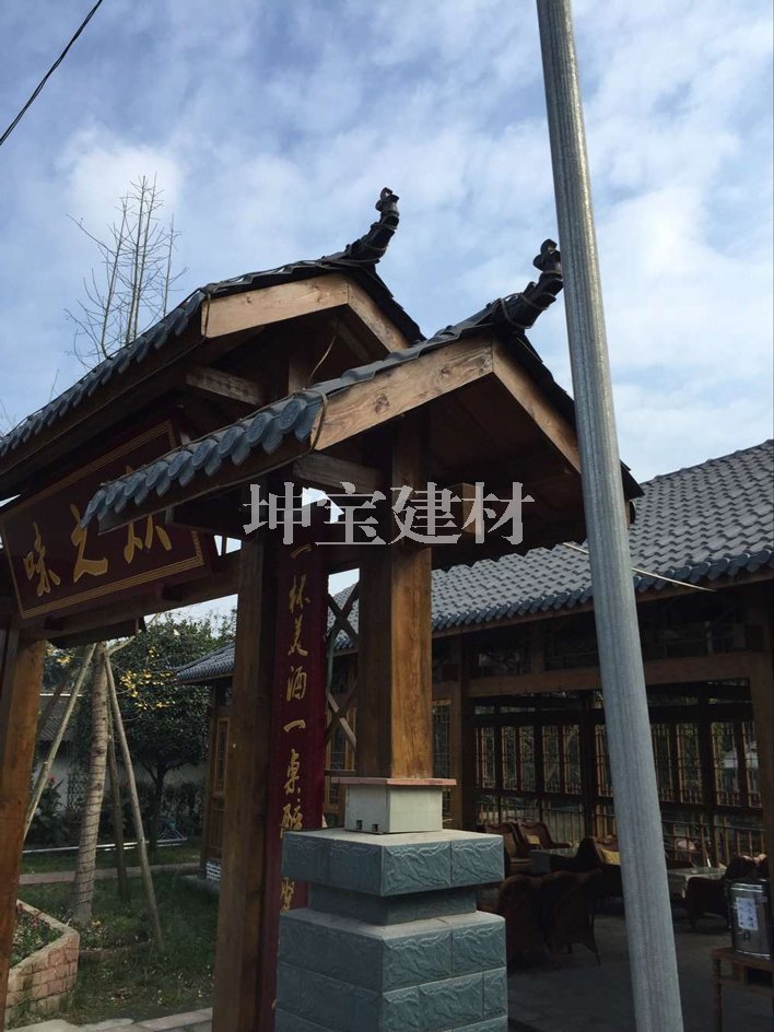公司銷售人員接到一個農(nóng)家樂老板的電話,讓我們到現(xiàn)場去看看,到了現(xiàn)場,是一家老牌的農(nóng)家樂,現(xiàn)在考慮要翻修,所以屋面想采用這種新型的ASA樹脂瓦,老板跟我們銷售講了現(xiàn)場的一些規(guī)劃,仿古造型、配件這些都搞上,當(dāng)天單子定了后第二天貨就拉到現(xiàn)場,緊接著開始施工,過了一個多星期后,老板給我們打電話說已經(jīng)搞好了,讓我們過去看下效果,到了現(xiàn)場老板高興的給我介紹了自家的農(nóng)家小院,餐廳、休閑長廊、棋牌室都搞的非常不錯。還有個門牌坊也搞的很好。對我們的質(zhì)量老板也是非常認(rèn)可。