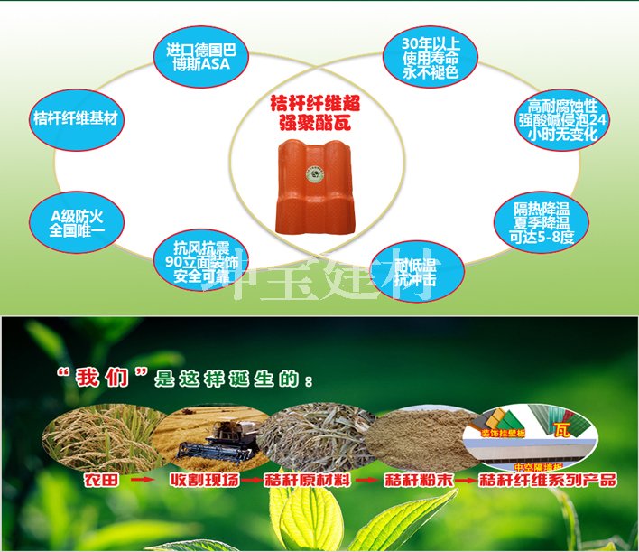 在高速發(fā)展的現(xiàn)代社會(huì)環(huán)境下,作為新時(shí)代公民我們有責(zé)任和義務(wù)愛(ài)護(hù)好身邊的環(huán)境,造福我們的子孫后代。目前國(guó)家也非常重視環(huán)保產(chǎn)業(yè)的發(fā)展與建設(shè)。鼓勵(lì)環(huán)保企業(yè)的發(fā)展與創(chuàng)新。正是在這樣的情況下,坤寶秸稈纖維超強(qiáng)聚酯瓦便應(yīng)運(yùn)而生。