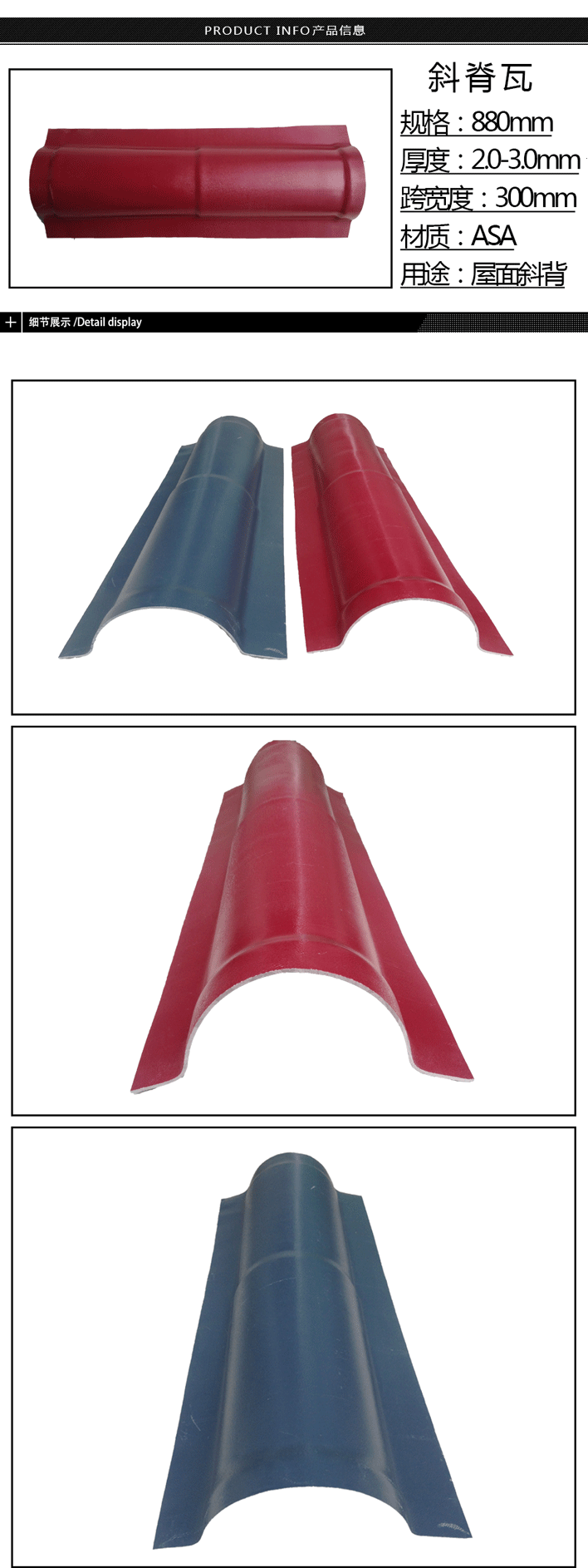 由于樹脂瓦是流水線生產(chǎn)作業(yè)每個部位的厚度可能不均勻,一般3.0mm(±0.2mm)和2.5mm(±0.2mm)都屬于正常的國家規(guī)定標(biāo)準(zhǔn)范圍內(nèi)。樹脂瓦瓦片可以做足厚的嗎?可以的,但是下單的時候要說明情況,沒有特殊要求按正常單處理。