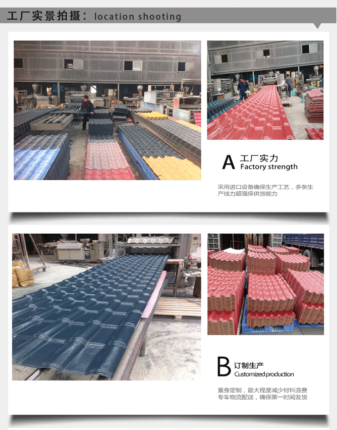 因?yàn)闃渲吆穸群皖伾话阈瓒ㄗ?,瓦的長度都是按照節(jié)距的倍數(shù)來定做的,所以親如果第一次購買的話,那么掌柜上圖有樹脂瓦尺寸對(duì)照表,親可根據(jù)這個(gè)來定做你需要的長度。