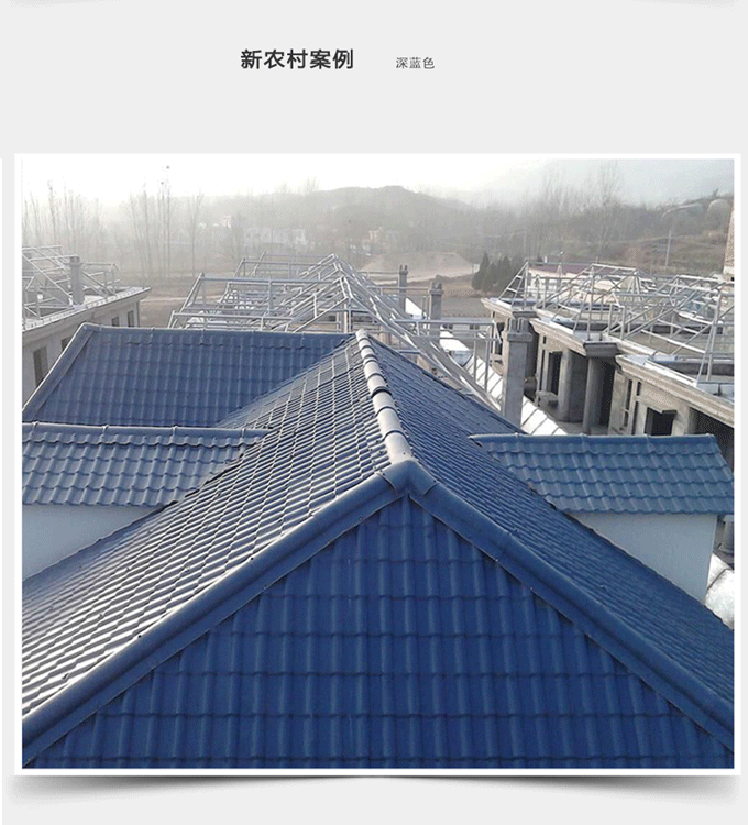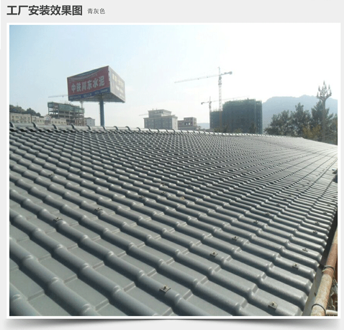合成樹脂瓦所選用的高耐候性能樹脂本身致密且不吸水,不存在微孔滲水的問題。產(chǎn)品寬度比傳統(tǒng)瓦寬45%,屋面接縫少,因此合成樹脂瓦比傳統(tǒng)瓦的防水性能大大提高。