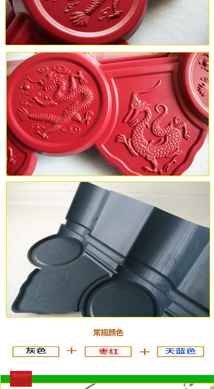 樹(shù)脂瓦常規(guī)顏色一般為灰色、棗紅色、如其他顏色則可根據(jù)客戶的要求定做顏色。因相機(jī)拍攝的效果和顯示屏的原因,樹(shù)脂瓦實(shí)物和網(wǎng)上的圖片有所差別。故客戶可拿樣確定顏色或者提供色卡為準(zhǔn)。